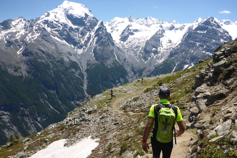 Nach der erfolgreichen Premiere im Vorjahr steht die zweite Auflage an. Mehrere Distanzen werden angeboten, alle haben ein Ziel und das liegt auf dem Passübergang des Stelvio. Beim Marathon summieren sich die Aufstiege heuer durch eine kleine Streckenänderung auf fast 2.500 Höhenmeter. Aufteilen könnte man die Strecke in drei Teile. Der erste Abschnitt ist etwa 16 km lang und besteht aus einer Schleife im Tal und führt wieder zurück in den Startort Prad. Gelaufen wird hier größtenteils auf Asphalt, was Straßenläufern besonders liegen wird. Der Mittelteil begünstigt die Trailrunner. Abwechselnd auf schmalen Pfaden und Naturwegen geht es bis Kehre 25 rustikal zur Sache. Beim Schlussabschnitt können gute Bergläufer zeigen, was noch in ihren Wadln und Oberschenkeln steckt. Über 24 Kehren führt die Straße ins Ziel am Passübergang. Das Zeitlimit beträgt hierfür 8.30 Stunden. Somit ist für jeden Läufertyp etwa dabei. Ich bin neugierig, wie sich die drei Teile als Gesamtkunstwerk anfühlen.