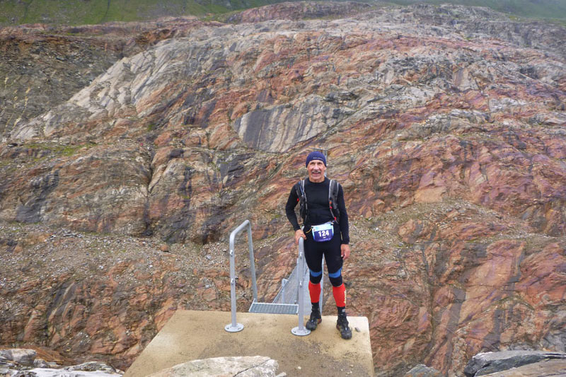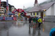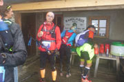 Übernacht hat sich aber leider optisch noch nichts an unserer „aussichtslosen“ Lage geändert und auch die Temperaturen sind zumindest nicht im Wohlfühlbereich, mal vorsichtig ausgedrückt. Die Liste der Pflichtausrüstung ist lang. Jan und ich beschließen letztendlich aufgrund der niedrigen Temperaturen bereits auf Starthöhe, die geforderten langen Hosen, statt in den Rucksack, gleich anzulegen. Außer Haus ist es dann noch ungemütlicher als es eigentlich von innen aussah. Beim Anmarsch zum Start regnet es auch noch ganz leicht dazu. Wir sind etwas spät dran, so verpassen wir die Hälfte des Race-Briefings, das um 6.30 Uhr, eine halbe Stunde vor dem Start angesetzt ist. Ich benutze die Einweisung im Piccardsaal um mit Regenjacke, Langarm-Shirt, Handschuhe und warmer Kopfbedeckung weitere Teil der Pflichtausrüstung auszupacken und gleich anzulegen. Aber, ich habe kurze Hose und Shirt im Gepäck. Die Hoffnung stirbt zuletzt und ich glaube immer noch an Sonne …irgendwann wird sie kommen, bin ich fest davon überzeugt.