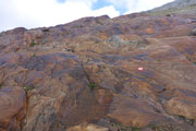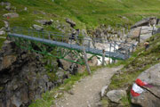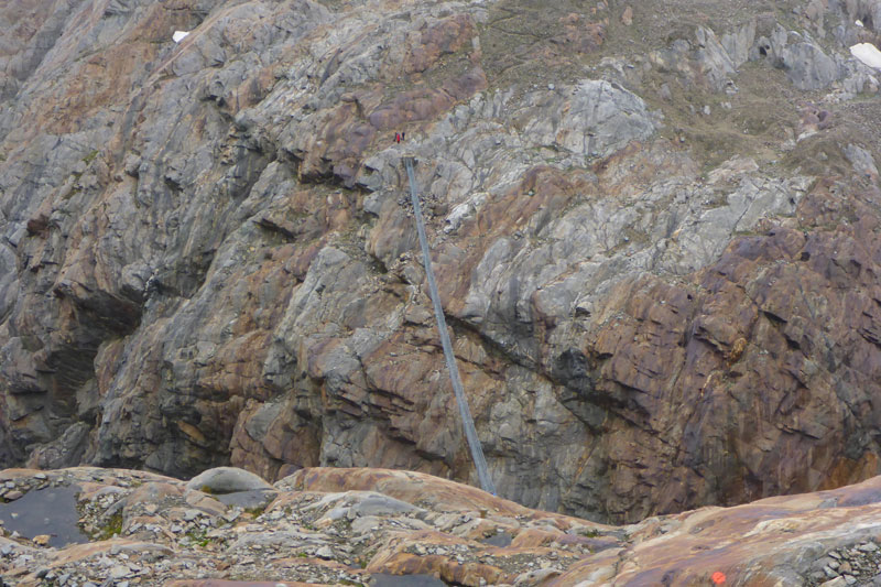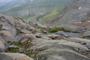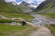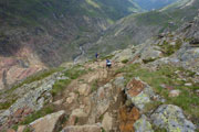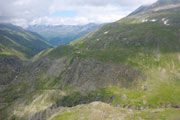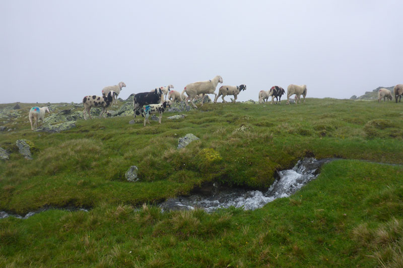 Immer wieder begegnen uns ein paar Schafe und Ziegen, oder sind etwas entfernt schemenhaft auszumachen oder einfach nur am blöcken zu hören. Sie bieten eigentlich gerade die einzige Abwechslung in dieser Nebelsuppe. Im Sommer ist das Ötztal Heimat für tausende Weidetiere. Hauptsächlich Schafe und Ziegen, aber auch einige Kühe und Pferde. Die meisten Tiere stammen aber aus Südtirol. Die Bauern aus dem Süden treiben schon seit Jahrtausenden ihre Nutztiere nach Nordtirol. Ursache für den Viehtrieb sind die trockenen Südtiroler Weiden, die im Sommer zu wenig Futter hergeben. Die beschwerliche, oft bis zu zwei Tage dauernde Wanderung über den Alpenhauptkamm ist daher die bessere Wahl für die Bauern.