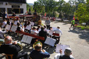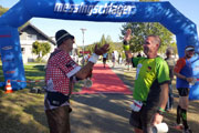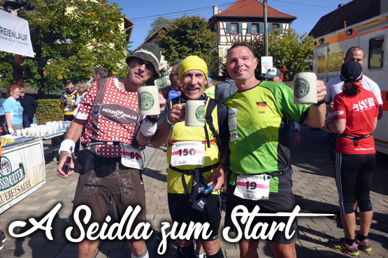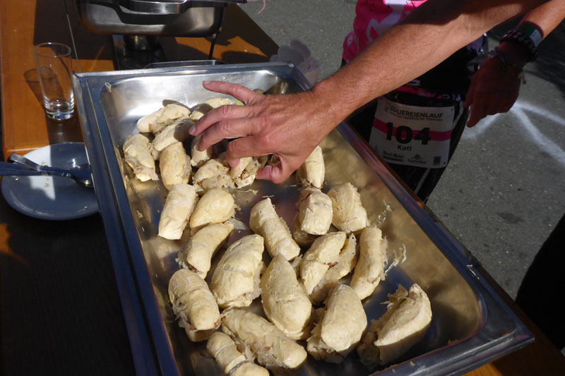 Los geht’s bereits am Freitag mit Blasmusik auf der Kloß-mit-Soß'-Party im Festzelt in Litzendorf. Der „eine“ Knödel mit Bratensoße schmeckt gut, ist aber doch etwas mager um unsere Mägen zu füllen. Wir sind erstmal alle etwas enttäuscht und halten uns im Zelt nicht lange auf, sondern gehen noch auf eine Pizza. Stimmungsmäßig fehlt hier im Vorfeld schon noch einiges im Vergleich mit den etablierten Weinmarathons. Ich verwerfe meine Idee wieder, mal meinen „Bayrischen Löwen“ los zu lassen und switche auf „Bayrisch-Alpenländisch“ um.