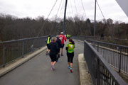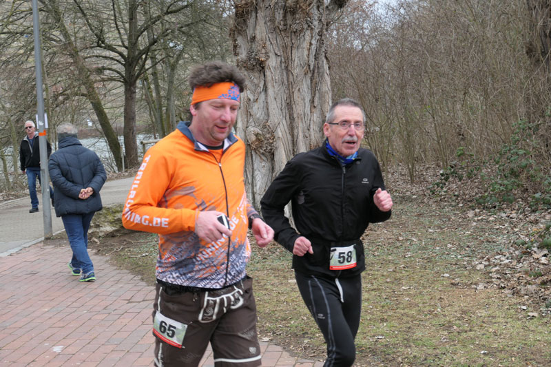 Dann machen wir uns auf den Rückweg zum Wassersportcenter. Es ist wieder das gleiche Bild wie auf den ersten fünf Kilometern. Kati und Cinzia entfernen sich ratschender Weise wieder etwas von Axel und mir. Aber es ist ja nicht so, als hätten uns Axel und ich nichts zu erzählen. So erreichen wir gemeinsam schon bald den Vier-Burgen-Steg und wechseln wieder auf die andere Neckarseite. Auf der identischen Strecke, wie auf dem Hinweg laufen wir die letzten beiden Kilometer der ersten Schleife zurück in Richtung Start.