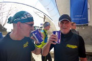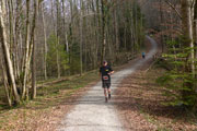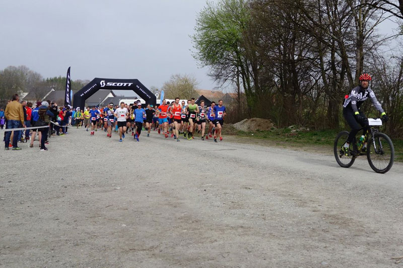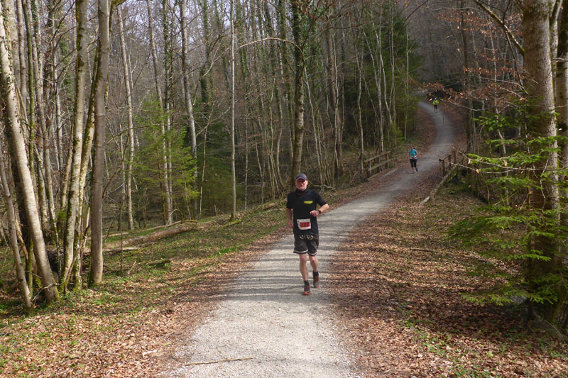 So mittendrin im Oberbayrischen haben wir uns alle drei für die „Lederhosen“ entschieden. Um 10 Uhr geht’s dann pünktlich und ganz unspektakulär los. Etwas weiter hinten in der Startaufstellung, bekommt man fast nicht mit, wie der Start-Countdown runtergezählt wird. Die ersten beiden Kilometer führen uns auf einer Schotterstraße an den Waldrand heran, wir haben uns alle drei vorgenommen, uns nicht vom Feld verleiten lassen zu schnell anzugehen. Das klappt auch ganz gut.
