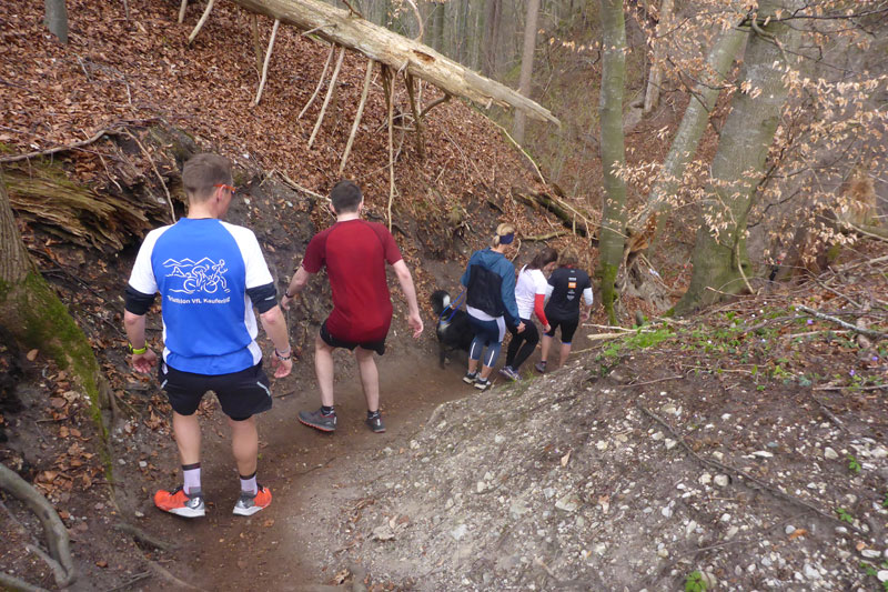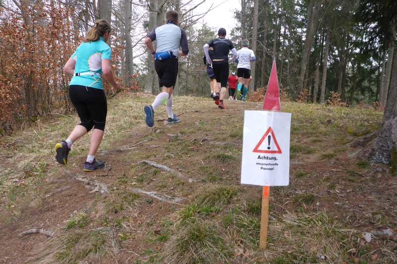 Wie immer werden zwei Streckenlängen angeboten, da wären der Beginner Trail mit ca. 8,5 km und 100 m Höhendifferenz und der Expert Trail mit über 15 km und ca. 300 Höhenmetern. Das ist natürlich unsere Strecke, aber auch „nur“ 15 km sollte man nicht unterschätzen. Generell sollte man sich am Start vielleicht einprägen, der Trail beinhaltet zwei vollkommen unterschiedliche Abschnitte. Auf den ersten Kilometern geht es wellig voran, aber ohne längere Anstiege und tendenziell sogar leicht abwärts, erst ab km 10,5 wird es dann richtig ernst, ab hier sind die meisten der Höhenmeter aufwärts zu bewältigen. So sollte man sich seine Kräfte für die Anstiege gut einteilen.