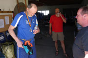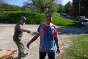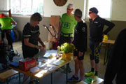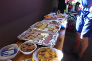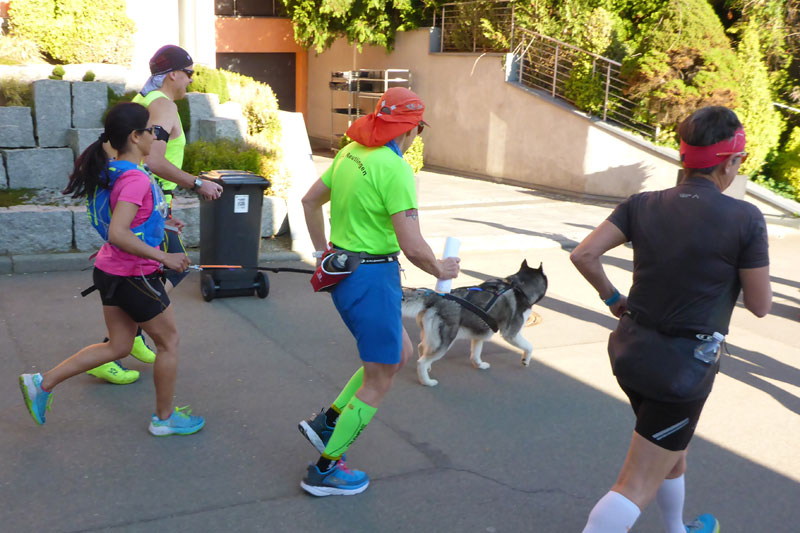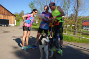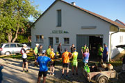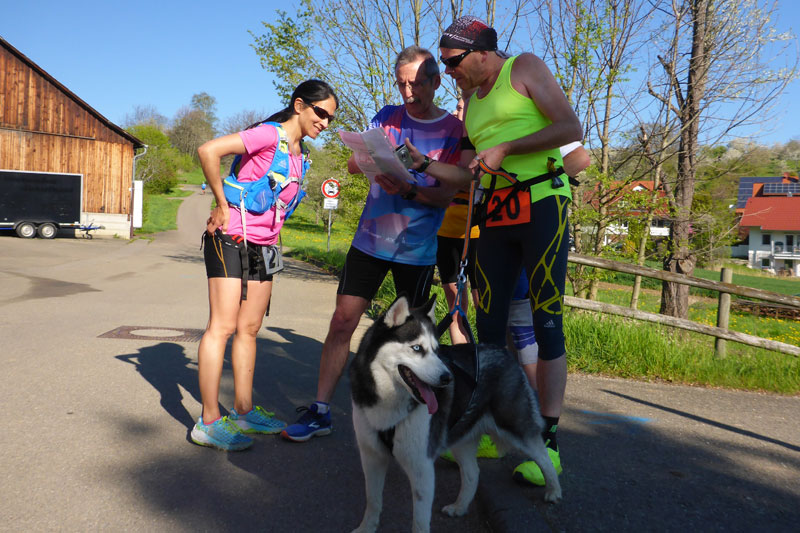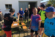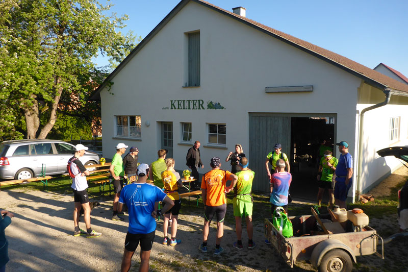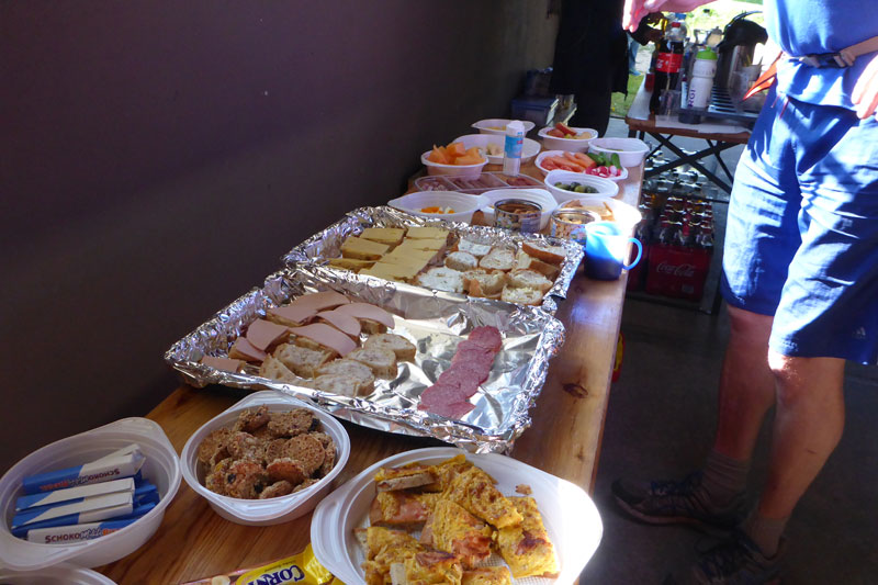 Die erste Runde ist geschafft, Gerd hakt mich ab. Jetzt ist erstmal ausgiebige Verstärkung in der Kelter am Büffet angesagt. Mich zieht’s zu Jörg’s super leckeren Rührei-Broten. Man weiß gar nicht wo man zuerst hinlangen soll, für jeden Geschmack ist etwas geboten. Ich setzte mich an den Tisch und futtere mich erstmal durch. Bela muss aufhören, das ist heute kein Husky-Wetter, zu warm. Nach fast 10-minütiger Verstärkung ziehe ich weiter.