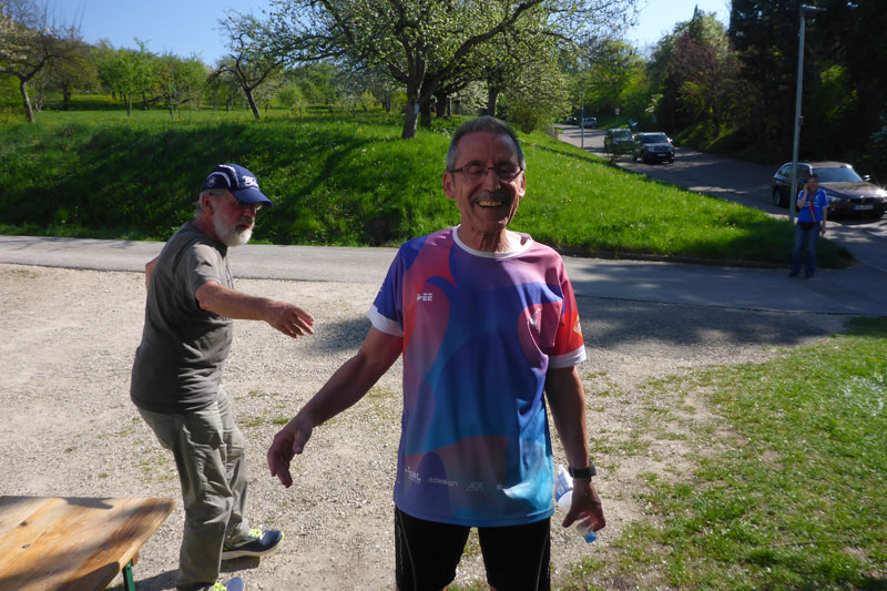An Getränken ist alles da, was man sich vorstellen kann. Einschließlich Hopfentee. Das Büffet ist immer noch reichhaltig, Jörg macht Würstchen warm, dazu gibt’s Kartoffelsalat. Steckerl-Eis gibt’s auch. In der Sonne vor der Kelter kann man sich jetzt herrlich erholen. Was will man mehr? Der Plain Vanilla ist wieder rundum gelungen. Danke Conny und Jörg, so macht Laufen Spaß.