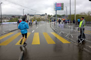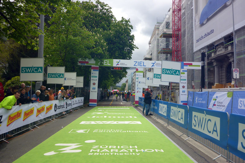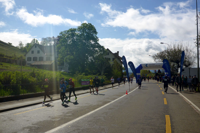 Kurz vor dem Bahnhof wende ich und über die Uraniastraße und Talstraße geht es zurück in Richtung Bürkliplatz. Wir biegen wieder nach rechts auf den General-Guisan-Quai und parallel zum Mythen-Quai laufen wir noch eine kleine Schleife auf der Alfred-Escher-Straße. Für die Teilnehmer des Cityruns steht der Endspurt an, wir haben Kilometer 9 erreicht. Kurz kann ich auch noch Wolfgang im Gewusel erkennen. Er ist kurz vor dem Ziel. Auf Höhe Strandbads Mythen-Quai wende auch ich wenige Minuten später und ordnete mich nach wenigen Metern auf die linke Spur der nun geteilten Strecke ein. Rechts geht es für die Cityrunner ins Ziel, links weiter auf der Marathonstrecke.