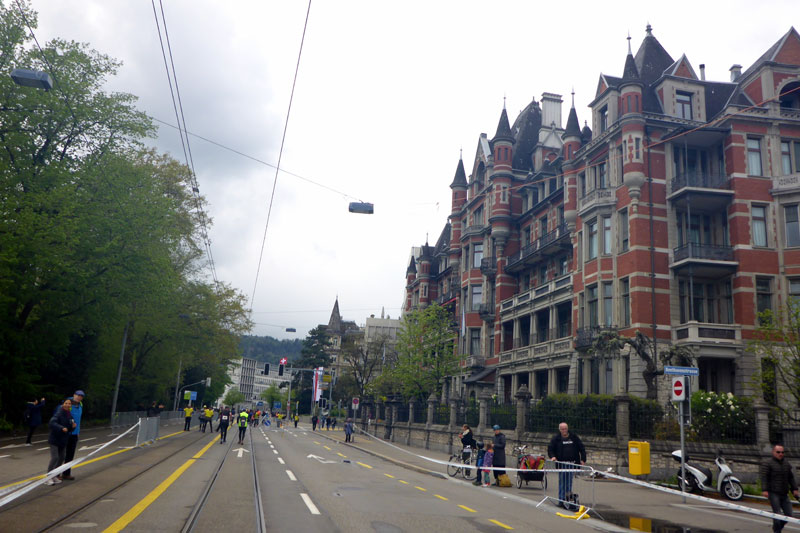 Es sind zehn Kilometer absolviert, ich habe schon viel gesehen und bin vom Zürich Marathon schon jetzt begeistert. Es ist an der Zeit mal in mich rein zu hören. Dafür kann ich mir jetzt auch Zeit nehmen, denn auf der Strecke wird es nun deutlich ruhiger. Die nächsten Kilometer wieder vorbei am Bürkliplatz, über die Quaibrücke, vorbei am Bellevue und die Bellerivestraße runter sind wir ja schon gelaufen. Zu meiner Freude kann ich nichts feststellen, was heute gegen einen schönen Marathon sprechen könnte. Es läuft gut. Ich bin entspannt. Das Tempo passt.
