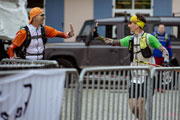 Start für den Marathon ist um 9 Uhr. Größere Parkplätze rund um den Veranstaltungsmittelpunkt sorgen zumindest für uns Marathonis für keinerlei Stress durch Parkplatzsuche. Bereits um 6 Uhr sind die Ultras am Chiemsee gestartet, die Schnelleren treffen bereits bei Start- und Ziel ein. Sie haben hier mit 34 km bereits etwas mehr als die Hälfte hinter sich, bevor es auf die zweite Schleife Richtung Hochgern geht. Ich kann den Ultra-Habicht abklatschen, der Dieter Ulbricht liegt gerade auf Rang 18. Als derzeit führende Frau folgt kurz danach Pamela Veith. Keine Unbekannte unter den Ultras, der Moderator hält einiges an Informationen über die Teilnehmer bereit und so auch über ihre Erfolge, so ist für Unterhaltung gut gesorgt.