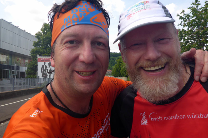Der iWelt Marathon in der unterfränkischen Kreisstadt Würzburg geht in diesem Jahr bereits in seine 19. Runde und Organisationsleiter Günter Herrmann verspricht ein Streckenfest mit 27 Bands. Bernie vom LIWA-Lauftreff und ich haben uns bereits vor einigen Monaten für Würzburg verabredetet. Für uns beide wird es ein ganz besonderer Marathon. Der letzte im zweistelligen Bereich, wie Bernie feststellt und zum wiederholten Male sind wir gemeinsam bei einem „Schnapszahl“-Marathon am Start. Es ist unsere Nummer 99, also der letzte Marathon vor den 100. Diesen wollten wir gemeinsam laufen und auch feiern.