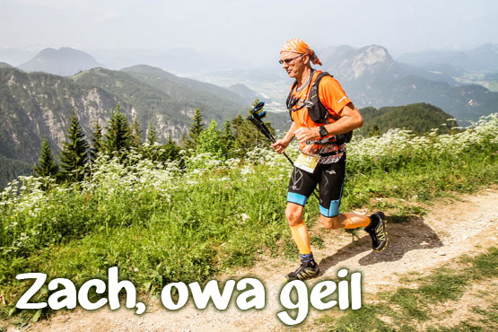 Vor dem Briefing spreche ich noch Rennleiter Andi Moser wegen der Chipbefestigung an, der amüsiert sich köstlich über meine kreative Lösung und macht gleich ein Foto. Des Rätsel Lösung ist ganz einfach, es gab bei der Abholung noch zusätzlich Klettbänder, in das der Chip eingefädelt und über dem Knöchel am Bein befestigt wird. Aha, habe ich übersehen. Also bitte für alle zukünftigen Starter, merkt euch das, die Klettbänder befinden sich nicht automatisch in den Startunterlagen.