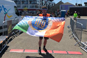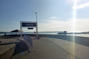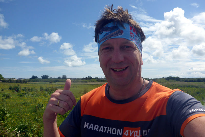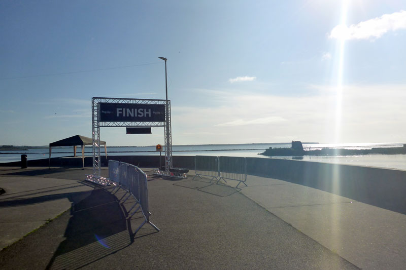 Am Sonntagmorgen ist es dann endlich so weit. Mein Jubiläumsmarathon steht an und ich bin tatsächlich etwas nervös. Eigentlich ist es doch nur ein Marathon wie jeder andere, aber irgendwie kribbelt es heute etwas mehr im Magen als sonst. Jedenfalls scheint auch das Wetter etwas zu einem tollen Jubiläum betragen zu wollen. Die Sonne strahlt. Am Himmel ist keine Wolke zu sehen. Es hat gut 15 Grad. Silke und ich treffen gut eine Stunde vor dem Start um 9 Uhr am Hafen ein. Der Zielbogen ist auf dem Kai im Hafen aufgebaut und der Startbogen gut dreihundert Meter weiter direkt am Hafen. Es wartet heute eine neue Strecke auf mich. Es geht 21 Kilometer runter nach Rosslare und auf der identischen Strecke wieder zurück. Im Gegensatz zu meiner letzten Teilnahme soll die Strecke flach sein, was aber alles relativ ist. Die Straßen hier sind immer leicht wellig, so dass mit Sicherheit auch keine einfache Aufgabe ist, die da vor mir liegt.