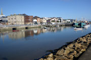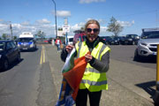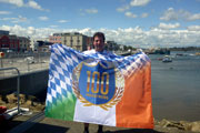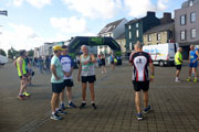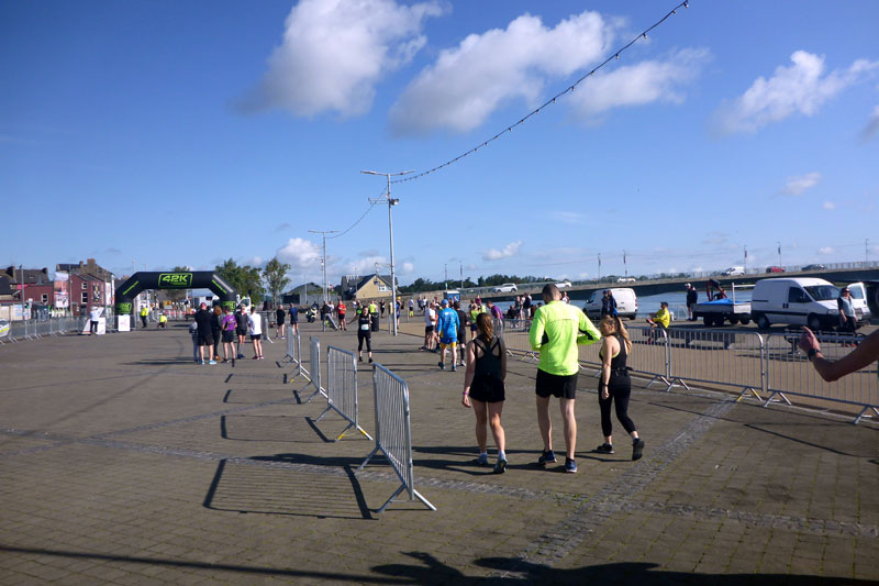 Am Hafen ist es noch ruhig. Die meisten, der gut 140 gemeldeten Läufer sind zwar schon da, doch Aufregung ist nicht zu spüren. Ich treffe vor dem Start zu meiner Freude noch auf Alexandra, die in Deutschland aufgewachsen ist, aber schon seit Jahren in Wexford lebt und kann mich so sogar noch ein paar Minuten auf Deutsch unterhalten. Eine viertel Stunde vor dem Start versammeln sich die Teilnehmer rund um den Startbogen. Gerry Forde, ein Handbiker, der auch vor drei Jahren schon am Start war, ist schon startklar. Heute hat er sogar einen Konkurrenten. Den beiden wird etwas Vorsprung gegeben, damit sie beim Start keine Probleme bekommen. Es sind noch gut zehn Minuten bis zum Start.