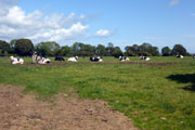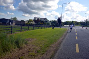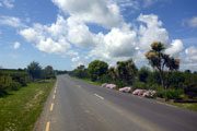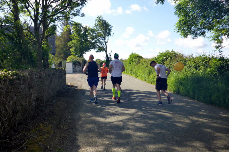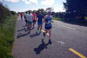 Am Hafen entlang laufen wir erst einmal in Richtung Süden. Die Strecke ist lediglich auf dem ersten Kilometer für den Verkehr gesperrt und zum Ortsende hin geht es schon mal leicht bergan. Als wir Wexford verlassen geht es auf einer breiten Landstraße weiter. Ab hier ist die Strecke wieder für den Verkehr freigegeben, was jedoch nicht stört. Die Iren sind äußerst rücksichtsvoll und zuckeln schon mal für mehrere Minuten hinter einem her, wenn es gerade keine Überholmöglichkeit gibt. Kurz nach dem „2 Meilen“-Schild geht es nach links weg und es wird ruhiger. Hier herrscht kaum noch Verkehr und wir passieren auch unser Hotel. Ich selbst bin inzwischen warmgelaufen und kann dem Pacer vor mir leicht folgen. Dennoch will ich ihm, wie geplant, nicht auf den Fersen bleiben und eventuell unnötige Körner zu verbraten. Dieser Streckenabschnitt ist wirklich herrlich. Bäume und Büsche säumen den Weg. Weitläufige Weiden liegen ebenso links und rechts von uns. Auf ihnen weiden riesige Kuh- und Schafherden. Einfach Irland! Unterwegs komme ich auch immer wieder mit Läufern ins Gespräch und so vergeht die Zeit wie im Flug.