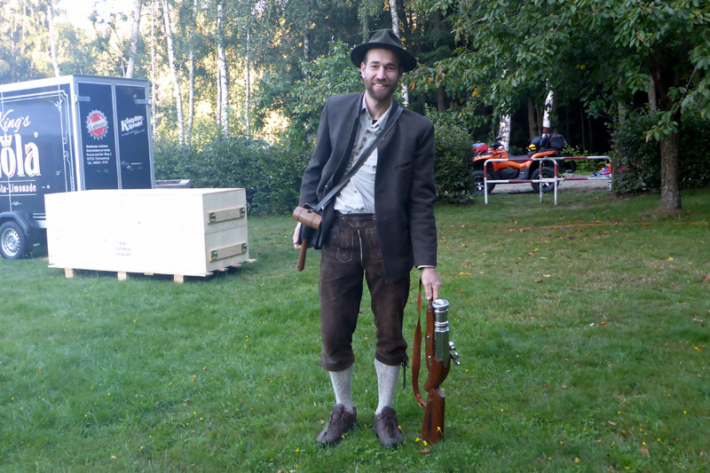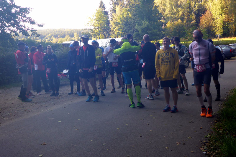 Kurz vor dem Start sehe ich einen Böllerschützen, der gerade dabei ist, seinen Böller zu laden und zu verdichten. Ich spreche ihn kurz an und er versichert mir, dass der Knall nicht allzu laut wird. Er hat sich für eine „Viertelladung“ entschieden, damit niemand vor Schreck aus den Schuhen kippt. Kurze Zeit später stehen wir auch schon an der Startlinie und es geht bald los. Mir gesteht man fünfzig Meter Vorsprung zu, damit ich den Start fotografieren kann. Für mich die Möglichkeit ein paar Läufer auf's Bild zu bekommen, denn ich bin mir jetzt schon sicher, dass es unterwegs einsam werden wird.