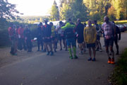 Und so setzt sich kurz darauf das Teilnehmerfeld in Bewegung. Ich habe nicht durchgezählt, aber ich denke, dass von den 36 gemeldeten Marathonis nahezu alle am Start gestanden haben dürften. Ich drücke noch schnell zweimal auf den Auslöser und dann ist das Feld auch schon an mir vorbei und ich reihe mich hinten wieder ein.