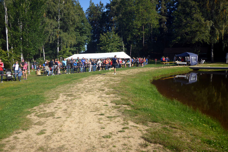 Gut eine dreiviertel Stunde vor dem Start fanden wir uns wieder am Bursweiher ein. Die Startunterlagen hatten wir nach wenigen Minuten in Händen. Eine schön gestaltete Startnummer und ein Startnummernband mit dem Natur.Vielfalt.Marathon-Logo wurden uns überreicht. Es war noch ruhig am Weiher, denn der Halb- und Viertelmarathon werden erste eine halbe Stunde bzw. eine Stunde nach uns auf die Reise gehen, so dass meist nur Marathonis anwesend waren.
