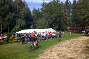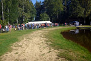 Wir machen uns schon am Samstagnachmittag auf den Weg, denn wir haben gut 220 Kilometer Anreise bis nach Tännesberg und quartieren uns nach unserer Ankunft erst mal in einem schönen Hotel in Moosbach, gut 10 Kilometer entfernt von Tännesberg ein. Danach wollen wir uns erst mal Tännesberg selbst ansehen und vor allem schon mal das Naturbad Bursweiher suchen. Dort befindet sich das Veranstaltungsgelände. Wir werden schnell fündig. Das Naturbad liegt gut einen Kilometer außerhalb von Tännesberg. Dort wird schon eifrig gewerkelt. Einige Helfer bauen ein Versorgungszelt auf. Alles sieht sehr entspannt und professionell aus. Ich treffe auch auf die beiden Hauptorganisatoren Philip und Michl und wir finden ein paar Minuten, um uns zu unterhalten. Die Stimmung hier ist schon jetzt klasse und macht Lust auf den nächsten Tag.