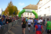 Der riesige Parkplatz vor der Sporthalle, wo sich Duschen, Massage und Gepäckabgabe befinden, sorgt bei mir für große Entspannung. So ein tolles Parkangebot findet sich eher selten. Nur wenige Gehminuten davon entfernt liegt die Stadthalle, hier gibt es die Startunterlagen, eine kleine Messe und ab 5.30 Uhr ist auch ein Läuferfrühstück zu haben. Das Wetter sorgt für eine gehörige Anzahl an Nachmeldungen. Trotzdem halte ich meine Startnummer schnell in Händen, jede Streckenlänge hat ihren eigenen Schalter. Mit einem angehefteten Bon dürfen wir als Antrittsgeschenk ein Paar Laufsocken von einem Markenhersteller empfangen. Sowas kann man natürlich immer gebrauchen.