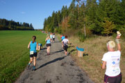 Nach 5 Kilometern erreichen wir am Waldrand unsere erste Versorgungsstelle, viel trinken ist heute angesagt. Angeboten werden Iso, warmer Tee und Wasser. Kurz vor Hubertshofen ist es dann soweit, nach 7 km tauchen wir erstmals ein in den Schwarzwald und werden ihn auch so schnell nicht wieder verlassen.