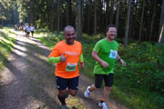 Ich komme mit Frank ins Gespräch, er bestreitet heute sein allererstes Laufrennen überhaupt, erzählt er stolz. Für seine Staffel legt er den ersten Abschnitt zurück, hat aber noch mächtig Respekt vor seinen 11,5 Kilometern. Als Ziel für sein Team sind Sub 4 ausgegeben. Na dann, viel Glück und natürlich in erster Linie viel Spaß. Etwas tiefer im Wald ist es wirklich wohl temperiert, bedeutend kühler als in der Sonne, es lässt sich sehr angenehm laufen. VP2 erreichen wir nach 10 km, wir können wieder Flüssigkeit aufnehmen. Der Tee ist noch schön warm, finde ich super.