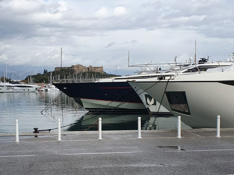 Wir überqueren die Pont Napoleon III. Unter uns kommt die Var aus den Bergen und mündet ins Mittelmeer. Wir folgen der Route du Bord de Mer die uns wieder ans Wasser führt. Im Yachthafen haben eine unüberschaubare Anzahl Superyachten in allen Kategorien festgemacht. Wir sind in der Gemeinde Saint-Laurent-du-Var, die hier am Fluss und am Meer eine außergewöhnliche Lage hat. Der Häfen zählt zu den größten an der Riviera. Bei Km 15 laufen wir durch das Hafengebiet, bevor es weiter geht am Meeresrand.