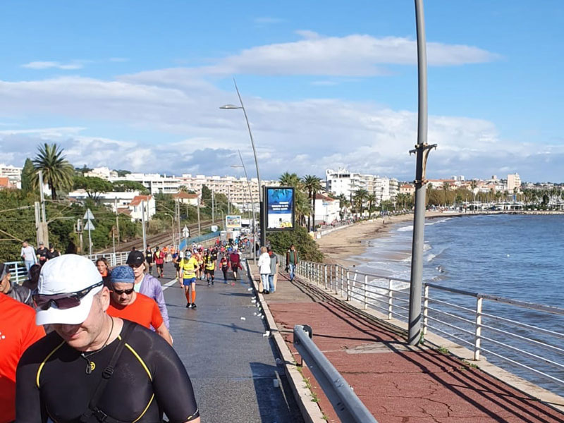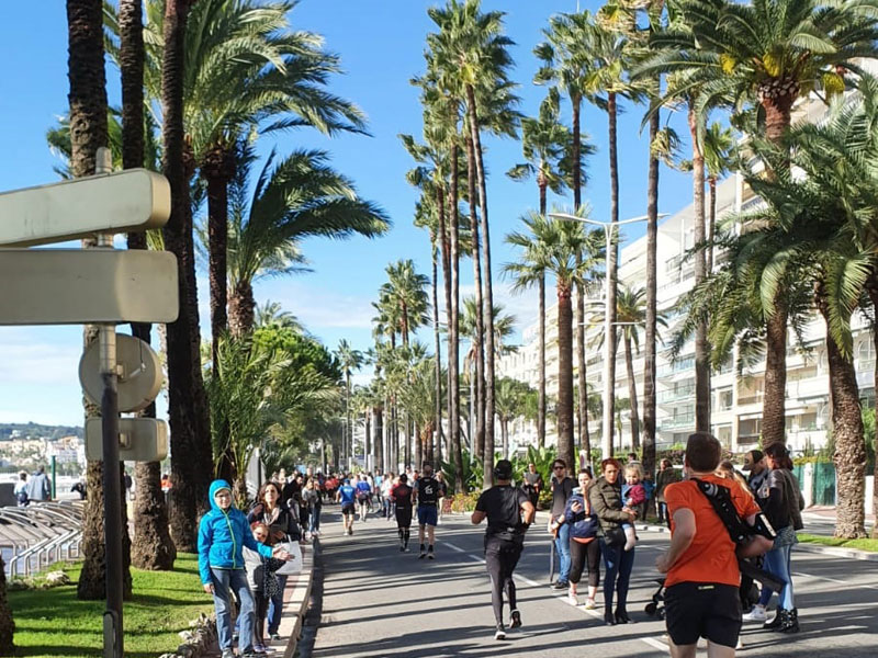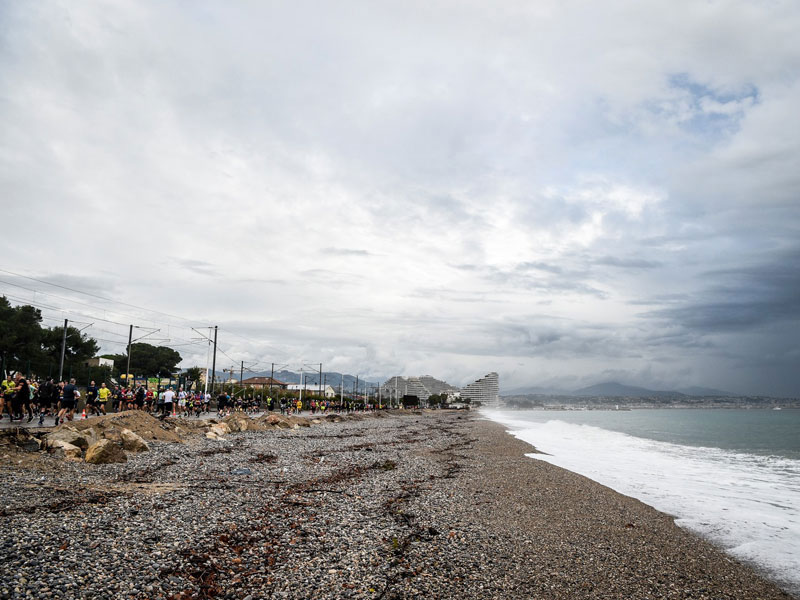 An der zum Wahrzeichen von Nizza gewordenen, famosen “Promenade des Anglais“ erfolgt der Start, das Ziel sollte man spätestens nach 6 Stunden in Cannes erreichen. Beim Marathon sind über 5.000 Teilnehmer*innen am Start, dazu noch Staffeln und Läufer*innen der 20 km von Nizza bis Villeneuve-Loubet, insgesamt fast 8.000 Starter.