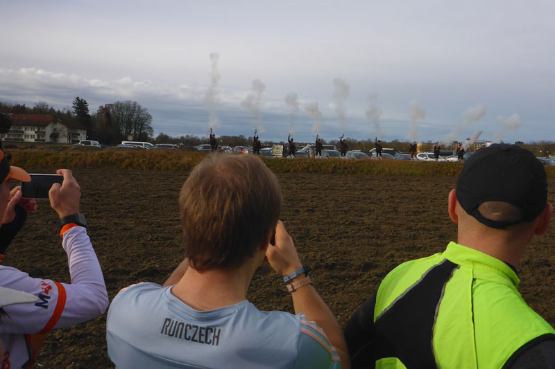 Pulverdampf steigt in den Himmel. Wie immer, werden wir mit einem mächtigen Knall aus den Büchsen der Hofmarkschützen auf unsere Runden geschickt. Das nächtliche Gewitter hat einiges an Wolkenfeldern zurückgelassen, aber immer wieder kommt auch die Sonne durch, dazu wird es an die 10 Grad haben. Viele haben heute bereits ihre kurzen Hosen ausgepackt …das gab’s noch nie.