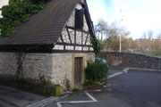 Nach einem Kilometer passieren wir das alte Fährhaus in Hofen. Recht unscheinbar liegt es direkt neben der Laufstrecke, beachtet wird es von keinerm. Von hier legte einst in regelmäßigen Abständen eine kleine Fähre ab, um Menschen, Tiere und Material auf das gegenüberliegende Ufer zu bringen. Bis 1934 war dies der einzige Weg, um auf die andere Seite zu gelangen.