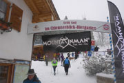 Für „M“ und „L“ erfolgt der Start um 7.30 Uhr. Mit einer großen Mountainman-Kuhglocke wird der Start pünktlich eingeläutet. Im Trockeneisnebel geht‘s durch‘s Stadion und auf dem weißen Schneeband Richtung Lofer. Am Krautloidersteg überqueren wir den Fluss, noch flach geht es an der Lofer entlang weiter bis Gut Steinbach das direkt an den Sprungschanzen liegt.