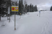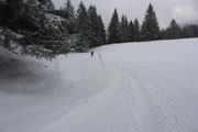 Nach drei Kilometer erreichen wir die drei Skisprung-Schanzen des WSV Reit im Winkl. Der Schanzenrekord auf der Franz-Haslberger-Schanze liegt bei 103 m. Erste gravierende Änderung unserer Runde ist der Aufstieg zur Hindenburghütte über den Schanzenweg, das war ursprünglich über einen anderen Weg geplant. Das reisst’s aber nicht raus, ich bin sogar der Meinung, der Schanzenweg ist die schönere Wahl. Die ursprünglich geplante Route, die ein paar hundert Meter weiter rechts hinauf führt ist eine reine Teerstraße. Auf dieser müssen jetzt aber die S-Starter in Kleinbussen hochgefahren werden.