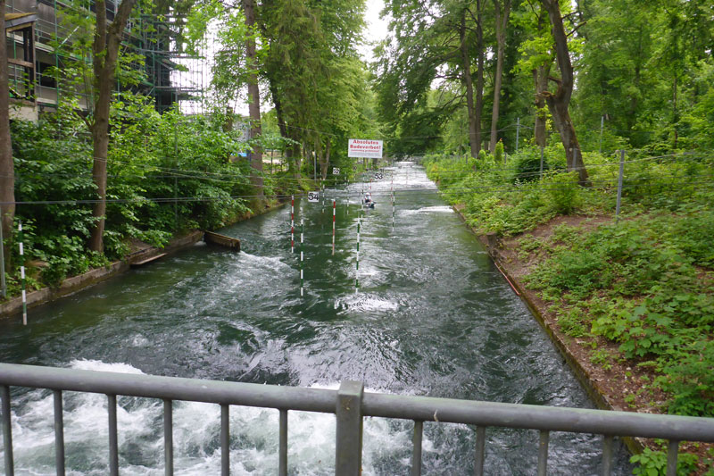 Leider wird uns der Durchlauf an der olympischen Kanustrecke entlang im wahrsten Sinne des Wortes vernagelt. Seit Anfang der Woche hat man an den Zugangsstellen zur Anlage einen Bretterzaum aufgestellt. Die Außenanlage muss modernisiert und das Kanuzentrum renoviert werden, um für die Kanuslalom-Weltmeisterschaften 2022 wieder bereit zu sein. Nur in etwas Abstand bekommt man noch Abschnitte des Eiskanals ins Blickfeld.