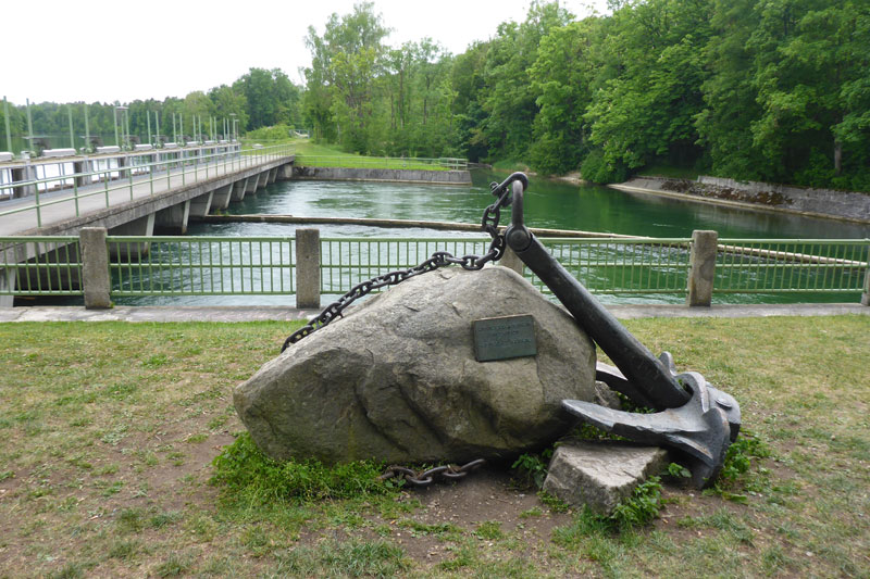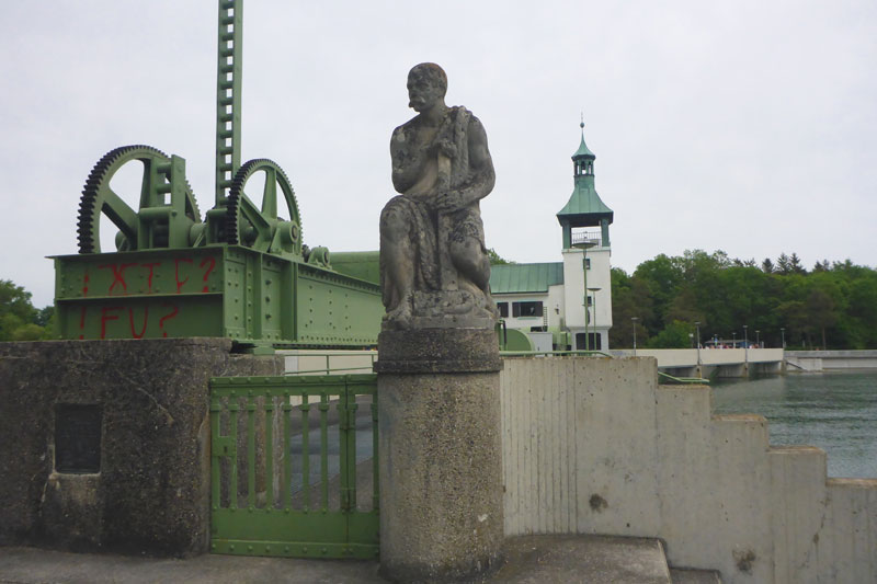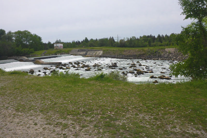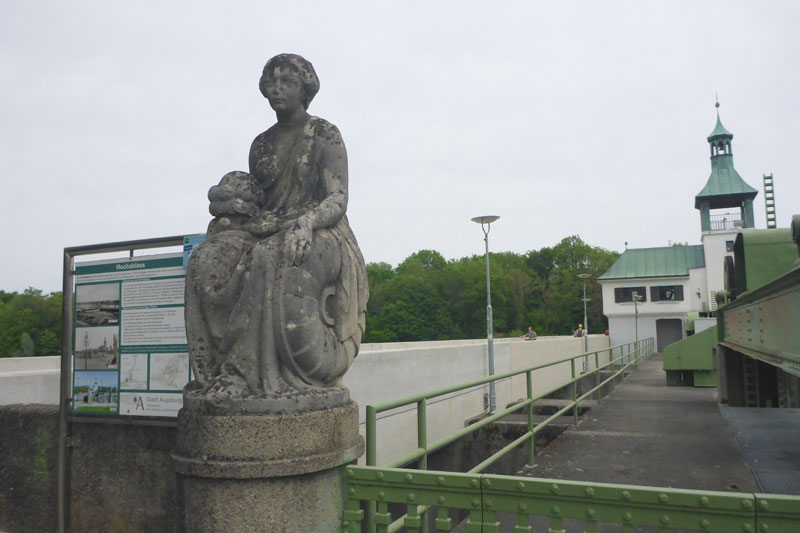 Am früheren Floßhafen erreichen wir den Hochablass nach 29 km. Seit der Römerzeit bis zum Bau der ersten Lechstaustufe um 1914 diente der Lech als Transportweg für Holz aus den Alpen oder für sonstige Handelsware. Die wichtigsten Häfen befanden sich in Reutte, Füssen, Landsberg und hier am Hochablass in Augsburg. Den Höhepunkt hatte die Flößerei Mitte des 19. Jahrhunderts mit mehreren Tausend Flößen pro Jahr.