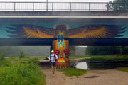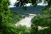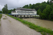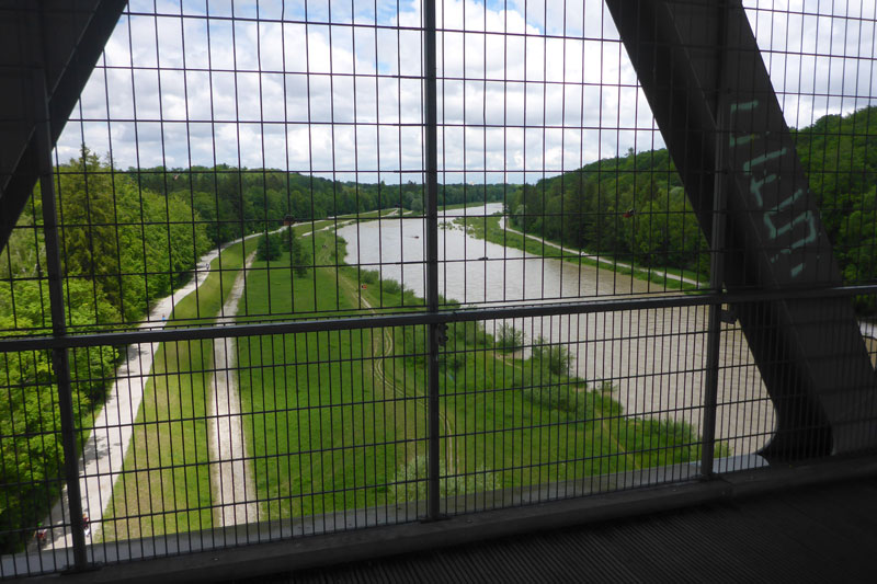 Nach einer Stunde (km 8,4) unterqueren wir die Großhesselloher Eisenbahnbrücke, beim Rückweg werden wir ihr von oben einen Besuch abstatten. An einer Wehranlage queren wir nach 11 km den Isarwerkkanal. Er wurde zu Beginn des 20. Jahrhunderts angelegt und betreibt die drei Münchener Isarkraftwerke.