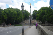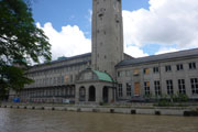 Pünktlich zum Glockenschlag um 9.00 Uhr von der gegenüberliegenden Kirche St. Lukas geht’s los Richtung Süden. Nach 200 Meter unterqueren wir die Ludwigsbrücke, Münchens älteste Isarbrücke. Direkt danach steht auf einer Sandbank das Deutsche Museum. Das Gebäude ist auch alt, es wurde 1925 fertiggestellt und im Zweiten Weltkrieg zu weiten Teilen zerstört, danach nur notdürftig wiederhergestellt und seitdem nie mehr richtig saniert. Aber jetzt ist es fällig. Bis zu seinem 100. Geburtstag soll es eigentlich gründlich renoviert werden. Aber wie fast immer: Das Geld reicht irgendwann nimmer, das Architekturbüro ist insolvent, der Zeitplan obsolet. 400 Millionen Euro sollte die Sanierung ursprünglich kosten, jetzt ist die Rede von mindestens 600 Millionen Euro. Schau mer mal ob’s dabei bleibt.