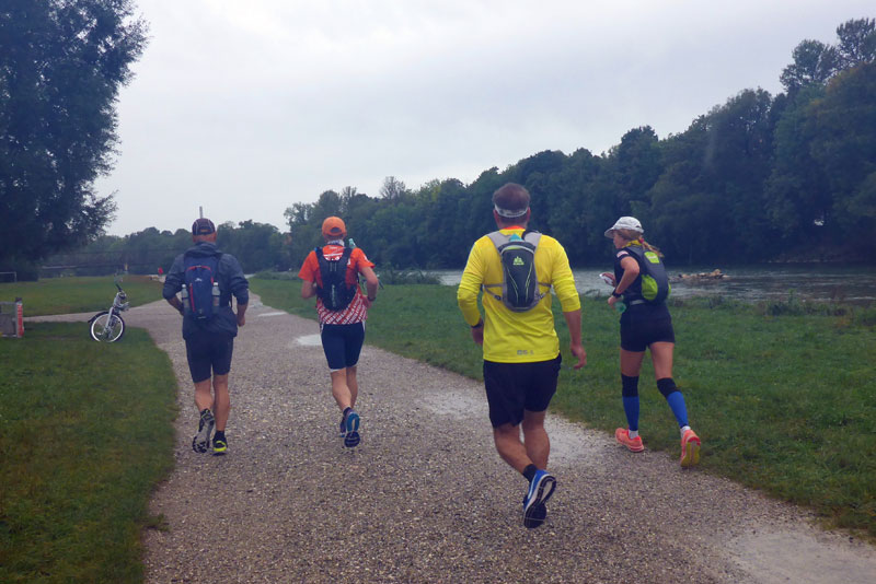 Judith Strack und Andreas Bettingen hatten sich für den Hartfüßler-Trail am letzten Augustwochenende angemeldet, der auch tatsächlich stattfinden sollte. Dennoch stand auf ihrer Seite „Isarmarathon.de“, dass am selben Wochenende bei Interesse auch eine neue Ausgabe des Isar-Marathons stattfinden sollte. Jürgen Englerth fragte einfach mal in die Runde der üblichen Verdächtigen. Judith und Andreas sagten sofort zu, da beim Hartfüßler-Trail vor einer akuten Gefahr von brechenden Baumwipfeln, die auf die langanhaltende Trockenheit zurückzuführen ist, eingehend gewarnt wurde und sie sich somit gegen einen Start entschieden. Damit stand dem 2. Isar Marathon Süd nichts mehr entgegen. Ich musste zunächst leider absagen, da ich dringende Gartenarbeiten schon zu lange vor mir herschiebe. Als ich in meiner Wetter-App sah, dass es am Samstag ausnahmslos regnen sollte, entschied ich mich gegen die Gartenarbeit und für München. Charly war auch dabei und damit war unser fünfköpfiges Teilnehmerfeld für dieses Wochenende komplett.