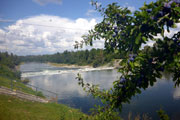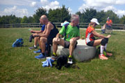 Um 09:00 Uhr soll es an der Lechstaustufe 23 unterhalb des Mandicho Sees auf der Ostseite des Lechs losgehen. Eine kleine Verzögerung gibt es allerdings, da mit Kati noch ein wichtiger Bestandteil des zehnköpfigen Teilnehmerfeldes fehlt. Axel hat einen entgangenen Anruf von Kati auf dem Handy, ein Rückruf ist aber nicht möglich. Ich mache mich auf die Suche und sehe schon bald Kati mit Martin auf der Suche nach dem Start. Das Navi hat sie etwas in die Irre geführt. Ich lotse die beiden in die richtige Richtung und so kann es mit ein paar Minuten Verzögerung losgehen. Die Laune am Start ist prächtig, das Wetter spielt auch mit, auch wenn es besser als versprochen und damit am Ende mal wieder zu warm wird. Nach einem gemeinsamen Gruppenbild – Martin ist heute nicht nur als Begleitradler dabei, er muss auch öfters als Fotograf herhalten – geht es los.