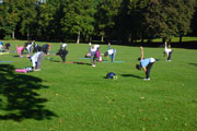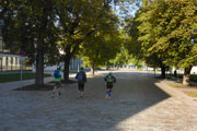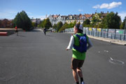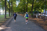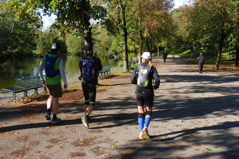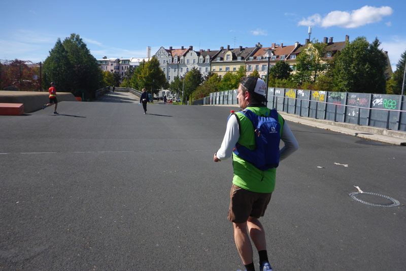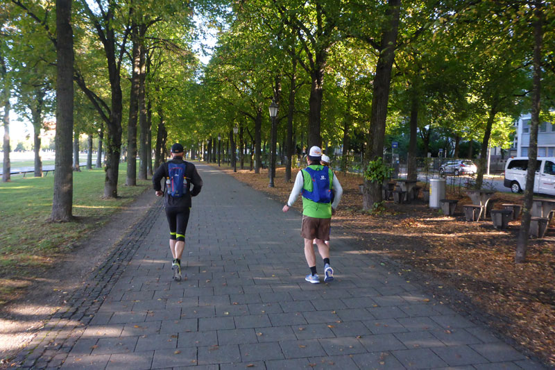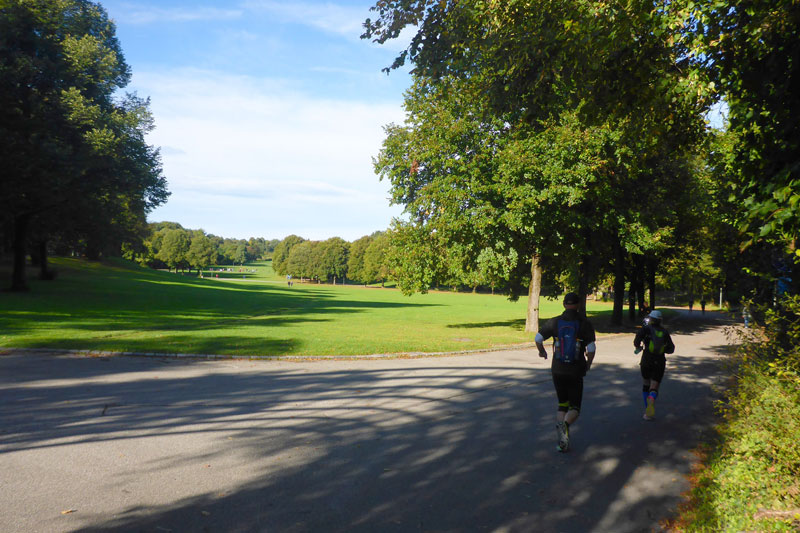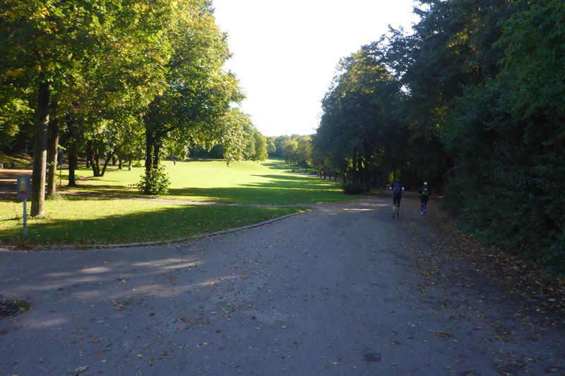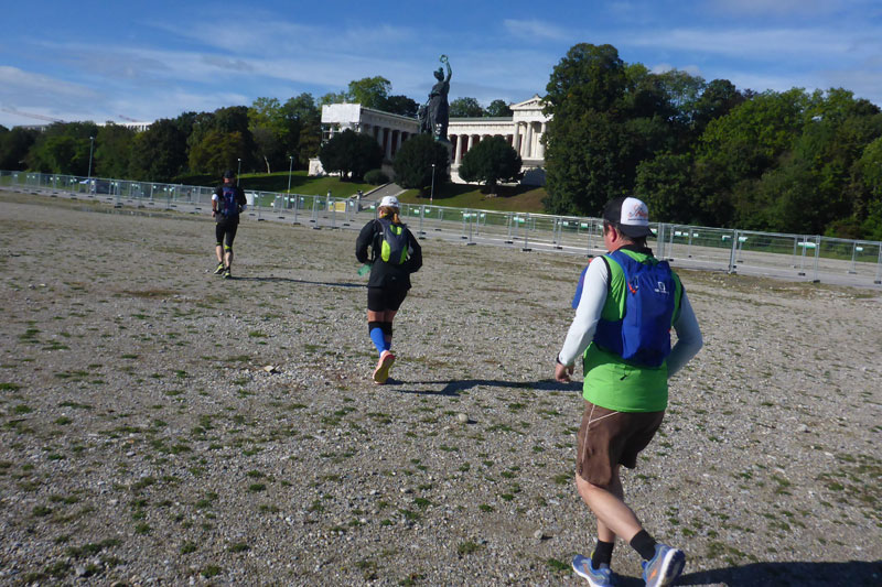 Ein Test vor Ort im Juli hat Judith und mir gezeigt, dass die Theresienwiese mit fast vier Kilometern Umrundungslänge zwar groß ist, ein Zehn-Runden-Marathon aber wohl doch etwas eintönig sein dürfte. Nimmt man hingegen eine Schleife durch den Westpark hinzu, ergibt sich gleich ein wesentlich abwechslungsreicherer Parcours von über 10 km, den man ohne Wartezeiten zwecks Straßenüberquerung viermal absolvieren kann – und das mitten in der Großstadt.