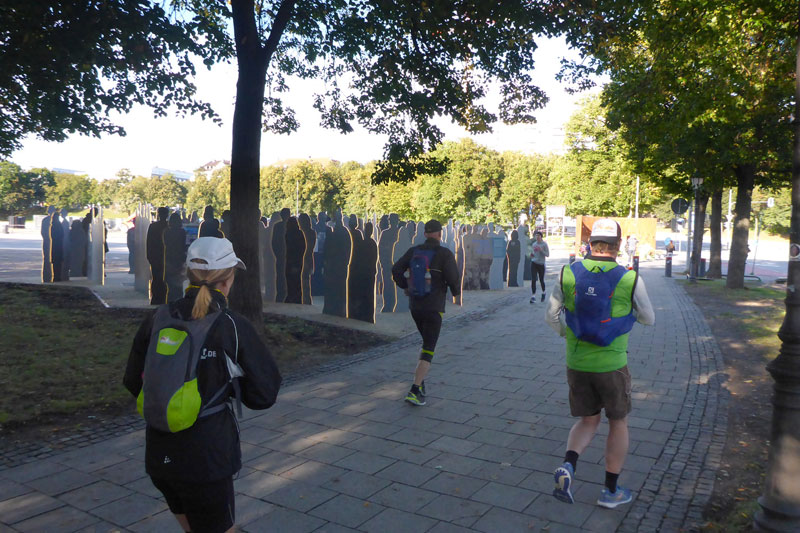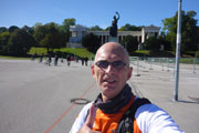 Zum 187. Mal hätte das weltweit größte Volksfest stattfinden sollen. Es ist aber nicht der erste Ausfall in seiner Geschichte, bereits 25 Mal, einschließlich 2020 musste abgesagt werden. Dafür kommen aber wir heuer zum Zug. Auf einem Spazierweg am Rande der Theresienwiese beginnt unsere erste Runde. Vier Mal müssen wir den Parcours, den sich Andreas ausgedacht hat, absolvieren, um auf die Marathondistanz zu kommen. Ich habe den Track zwar auch auf meinem GPS, aber Judith ist ja dabei und übernimmt in der ersten Runde die Funktion als Strecken-Scout. Einen großen Nachteil hat das Fehlen von Andreas für uns leider schon, so fehlt uns der Fremdenführer, als Münchner hätte er uns bestimmt wie immer bei seinen Läufen, sehr viel erzählen können.