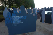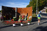 Nach 700 Meter erreichen wir den Haupteingang der Wiesn. Gestern fand hier die Gedenkfeier zum 40. Jahrestag des Oktoberfestattentats mit Bundespräsident Frank-Walter Steinmeier, Ministerpräsident Markus Söder und Oberbürgermeister Dieter Reiter statt. Zudem wurde eine neue Erinnerungs- und Dokumentationsstätte eröffnet. Die beleuchteten 234 Figuren stehen für 234 Opfer und die bedeuten nach wie vor das größte Attentat in der Geschichte der Bundesrepublik. Über einen QR-Code können sich die Besucher an den einzelnen Stationen einloggen und dann Texte übers Handy hören.