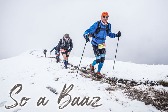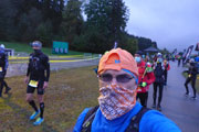 An der Alpe Blöße (km 18) ist die zweite große Labe. Neben hygienisch verpackten Broten mit Käse, Speck, Griebenschmalz und veganem Aufstrich steht erstmals auch Cola im Angebot. Rainer ist ein echter Mountainman, stolz präsentiert er mir sein Tattoo mit dem Original Mountainman-Logo auf dem Oberarm. Er ist auch bei fast jeder Veranstaltung dabei.