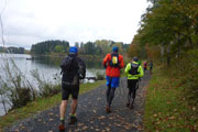 Knapp zwei Kilometer laufen wir am Ufer entlang bis ans östliche Ende wo wir wieder Richtung Berge abzweigen. Leicht wellig mit kürzeren Steigungen und sehr abwechslungsreich geht es weiter. Da sind auch mal 500 Meter auf dem Radweg neben der Landstraße dabei, aber auch wieder schöne Trailabschnitte und Waldwege.