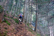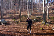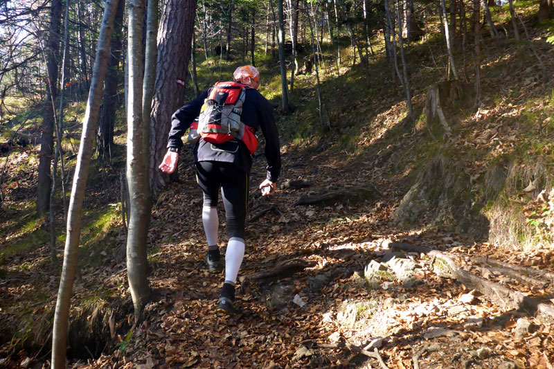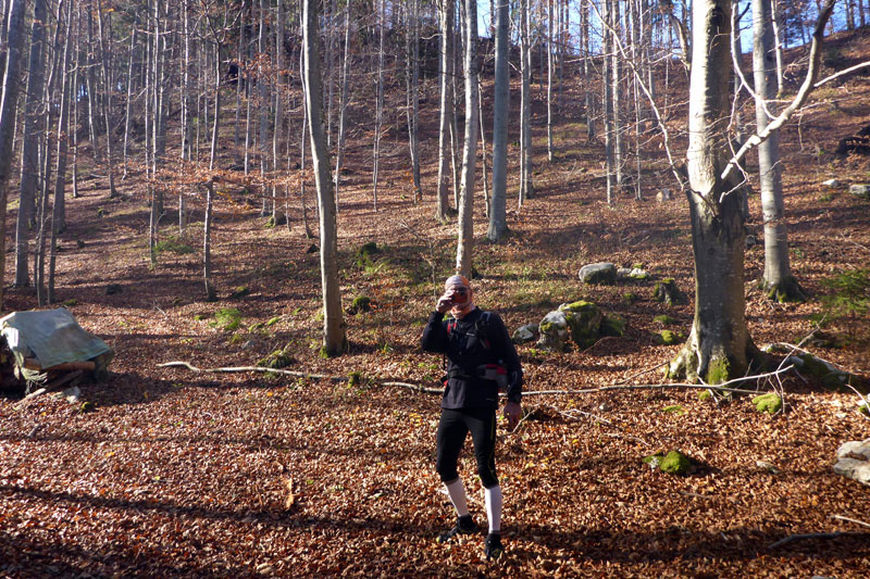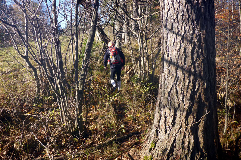 Nun führt der Weg nach rechts weiter, doch schon nach wenigen Metern müssen wir feststellen, dass wir wohl wieder einmal vom rechten Pfad abgekommen sind. Ungläubig schauen wir uns um, es gibt keinen anderen Weg. Oder etwa doch? Wir werden fündig und der Trail-Spaß hat uns wieder. Es geht zwischen Büschen und Unkraut einen Hügel hoch. Mit viel Fantasie kann man sich vorstellen, dass hier schon mal jemand vor uns gelaufen ist. Schließlich geht es einige Kilometer durch den herrlichen Wald weiter und mit der Navigation klappt es wieder etwas besser.