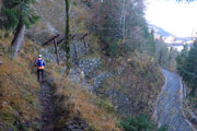 Ein kurzer Stich über die Ländenscharte führt uns über die Grenze wieder nach Tirol. Der Ländeweg führt uns am Lech entlang zum Lechfall. Wir verpassen wieder mal einen Abzweig der Originalstrecke, die wieder in den Wald geführt hätte, aber letztendlich genauso am Lechfall geendet hätte. Mittlerweile ist es schon sehr dämmerig, außerhalb der Bäume können wir uns noch gut ohne Lampe bewegen, daher verwerfen wir eine spätere Möglichkeit doch noch zum Originalkurs aufzusteigen.