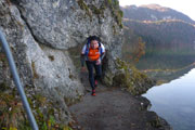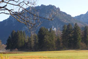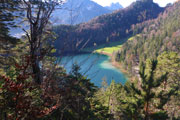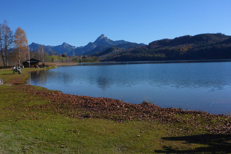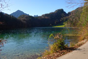 Der komplette Falkensteinkamm erreicht nicht einmal 1300 Meter Höhe, unser höchster Punkt liegt bei 1150 m. Dieses reizvolle Wandergebiet war auch dem Kini bekannt, der auf dem Falkenstein ein weiteres Märchenschloss errichten wollte. Dabei waren die anderen Schlösser noch nicht mal fertiggestellt. Aus den königlichen Plänen wurde nichts mehr und so stehen dort noch bis heute die Mauerreste der Burgruine Falkenstein. Wir wären nicht mehr weit davon entfernt. Aber ein erneuter U-Turn führt wieder Richtung Alatsee.