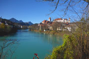 Gerade noch rechtzeitig, um bei letztem Tageslicht noch ein paar Fotos zu schießen, kommen wir am Lechfall an. Bis zu zwölf Meter stürzen hier die Wassermassen des Lechs über fünf Stufen in die Tiefe. Vom König-Max-Steg aus haben wir einen einmaligen Blick auf das Spektakel. Ende des 19. Jahrhunderts wurde der Lechfall zur Stromgewinnung künstlich angelegt.
