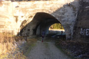 Der zweite Tunnel führt uns in den Hartwald hinein, hier sind wieder diverse Höhenmeter für uns zu meistern, aber es macht Spaß, die Strecke ist bis auf wenige Ausnahmen gut und Schlammfrei zu laufen. Am Ende des Waldabschnittes ist der höchste Punkt erreicht. Etwa anderthalb Kilometer geht es nun leicht bergab und an der Meringerzeller Straße auf dem asphaltierten Fuß- und Radweg wieder zum Startpunkt zurück. Greppis Kilometerschätzung passt nicht ganz, genau 11 km ist die Runde lang.