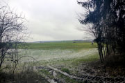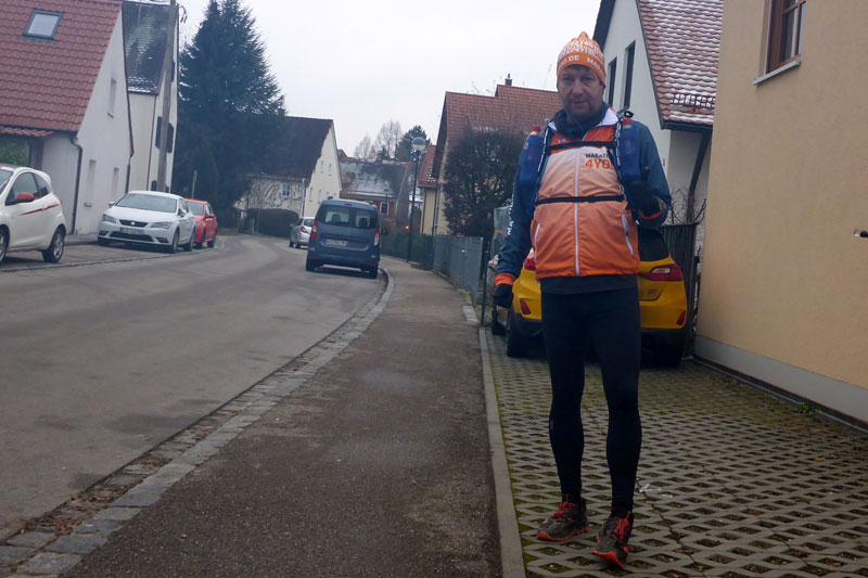 So stand ich also am nächsten Morgen, so gegen halb Zehn vor meiner Haustüre und musste nur noch auf meine Laufuhr warten. Als diese Kontakt zum Satelliten hatte, trabte ich gemütlich los. Ich lief zum nördlichen Ortsrand von Mering und freute mich schon auf die kurze Trailstrecke, die vom Spielplatz im Unterfeld in Richtung Kissing führt. Leider war der Boden hartgefroren, so dass ich etwas Vorsicht walten lassen musste. Apropos hartgefroren. Im Gegensatz zu letzter Woche, war es heute um gut drei Grad wärmer, aber irgendwie nasskalt und die Sonne würde sich heute sicherlich auch nicht zeigen. Da hieß es sich erst einmal warmzulaufen. Kurz vor Kissing, bog ich unterhalb der Burgstall-Kapelle in Richtung Ottmaring ab und nahm die ein oder Abzweigung mit. Damit kamen nicht nur Kilometer, sondern meist auch zusätzliche Höhenmeter auf die Uhr.