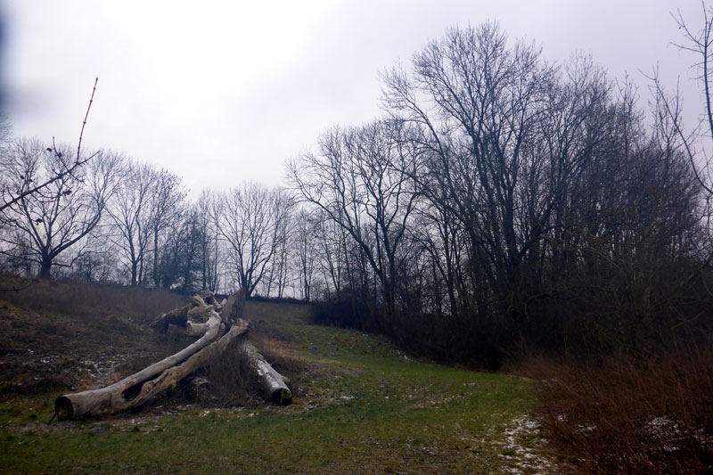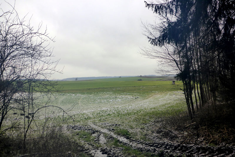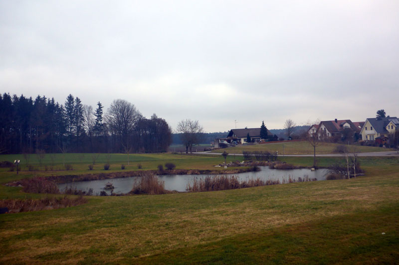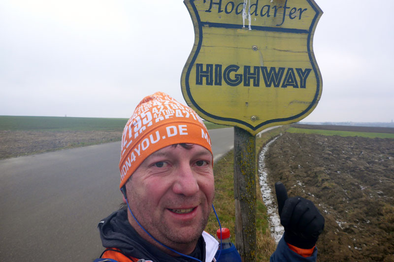 Ich lief auf dem Radweg weiter nach Ried und anschließend zum ersten Mal bis raus nach Baindlkirch. Ich überlegte noch kurz bis Egenhofen weiterzulaufen, drehte jedoch dann Richtung Tegernbach ab. Weitere zwei Kilometer führten mich von Tegernbach nach Mittelstetten. Hier kann man leider nur auf der Straße laufen was ich immer mit größter Vorsicht mache. Die Strecke ist kurvenreich und verführt nicht selten Biker oder Möchtegern-Hamiltons zum Rasen. Heute läuft‘s sich aber entspannt, es ist kaum Verkehr und die zwei oder drei Autos denen ich begegne, verhalten sich mir gegenüber vorbildlich. Ich merke nun auch schön langsam aber sicher, dass mir etwas kalt wird. Meine Klamotten sind klamm, also heißt es stets in Bewegung zu bleiben. In Mittelstetten biege ich Richtung Oberdorf ab. Der kleine Ortsteil von Mittelstetten ist gleich durchquert und nach ein paar Metern finde ich mich im östlichen Hartwald wieder. Über ein paar Hügel geht‘s durch den Wald weiter nach Hochdorf. Bei den Anstiegen im Wald muss ich ziemlich konzentriert laufen, um nicht auf der Nase zu landen. Die Wege sind teilweise eisglatt.