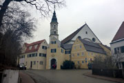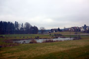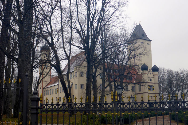 Nach Oberdorf geht‘s weiter in Richtung Steinach, wieder auf welligem Terrain, aber dafür auf Teer. Meine nächste Station soll nun Hofhegnenberg werden. Das Schloss Hofhegnenberg ist schon von Weitem zu sehen. Ich stelle nun fest, dass ich schon gut 23 Kilometer auf der Uhr habe, die im Gegensatz zu den beiden letzten Läufen wieder zuverlässig arbeitet. Dazu passt auch das leichte Hungergefühl und ich überlege trotz der lausigen Temperaturen einen kurzen Stopp einzulegen.