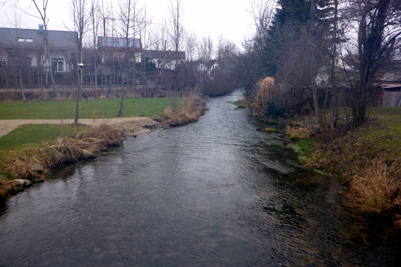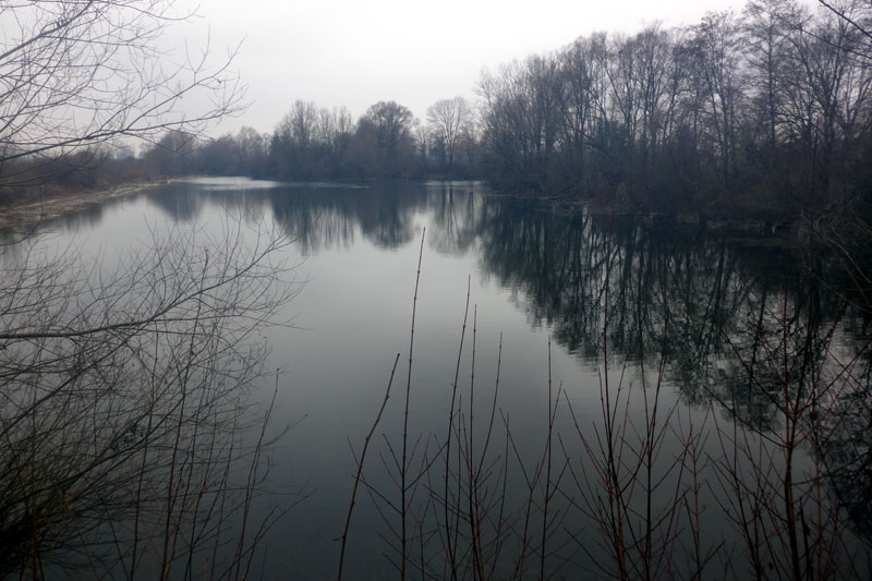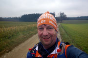 Frisch gestärkt laufe ich ein paar Minuten später weiter nach Steindorf und von dort aus über einen Feldweg in Richtung Merching. Über die Lechstaustufe soll es nun wieder in Richtung Heimat gehen und ich kontrolliere immer wieder mal die Kilometer. Eine Extraschleife mit Trail-Einlagen um den Schwanensee bringen noch ein paar Extrameter. Es könnte knapp werden mit dem Marathon und trotz ein paar Schleifen durch Mering muss ich, als ich meiner Haustüre ziemlich nahe komme, feststellen, dass noch gut anderthalb Kilometer fehlen. Mir ist inzwischen ziemlich kalt und ich sehne das Ende des Laufs herbei. Da muss ich jetzt meinen inneren Schweinehund schier prügeln und eine weitere Schleife durch Mering bringt mich letztendlich doch auf die Marathondistanz. Die Runde war heute ziemlich kurzweilig für mich, auch wenn es am Ende – wie meistens – etwas zäh wurde.